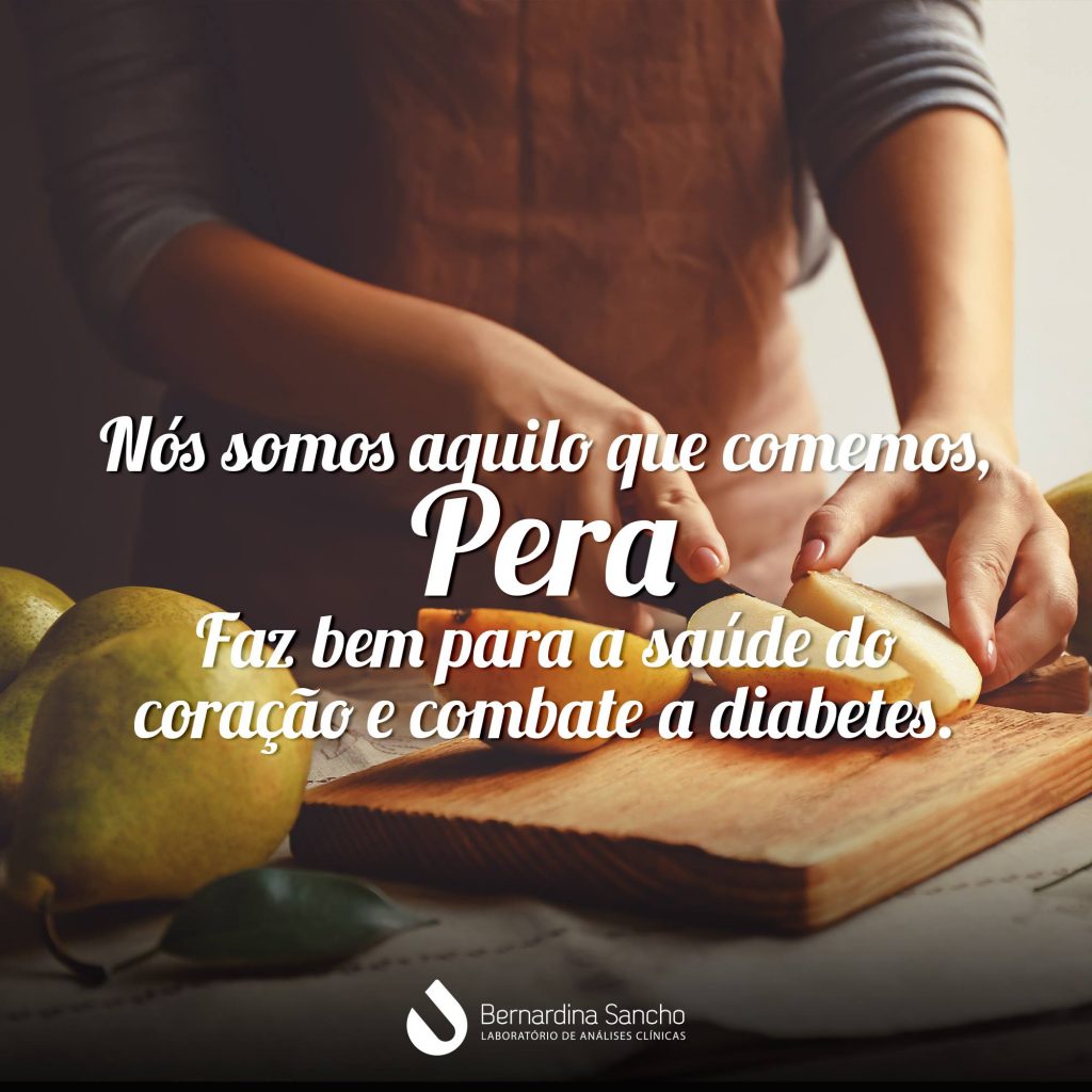 A pera é rica em fibras o que contribui para um baixo índice glicêmico por ajudar a liberar o açúcar de maneira gradual no sangue.